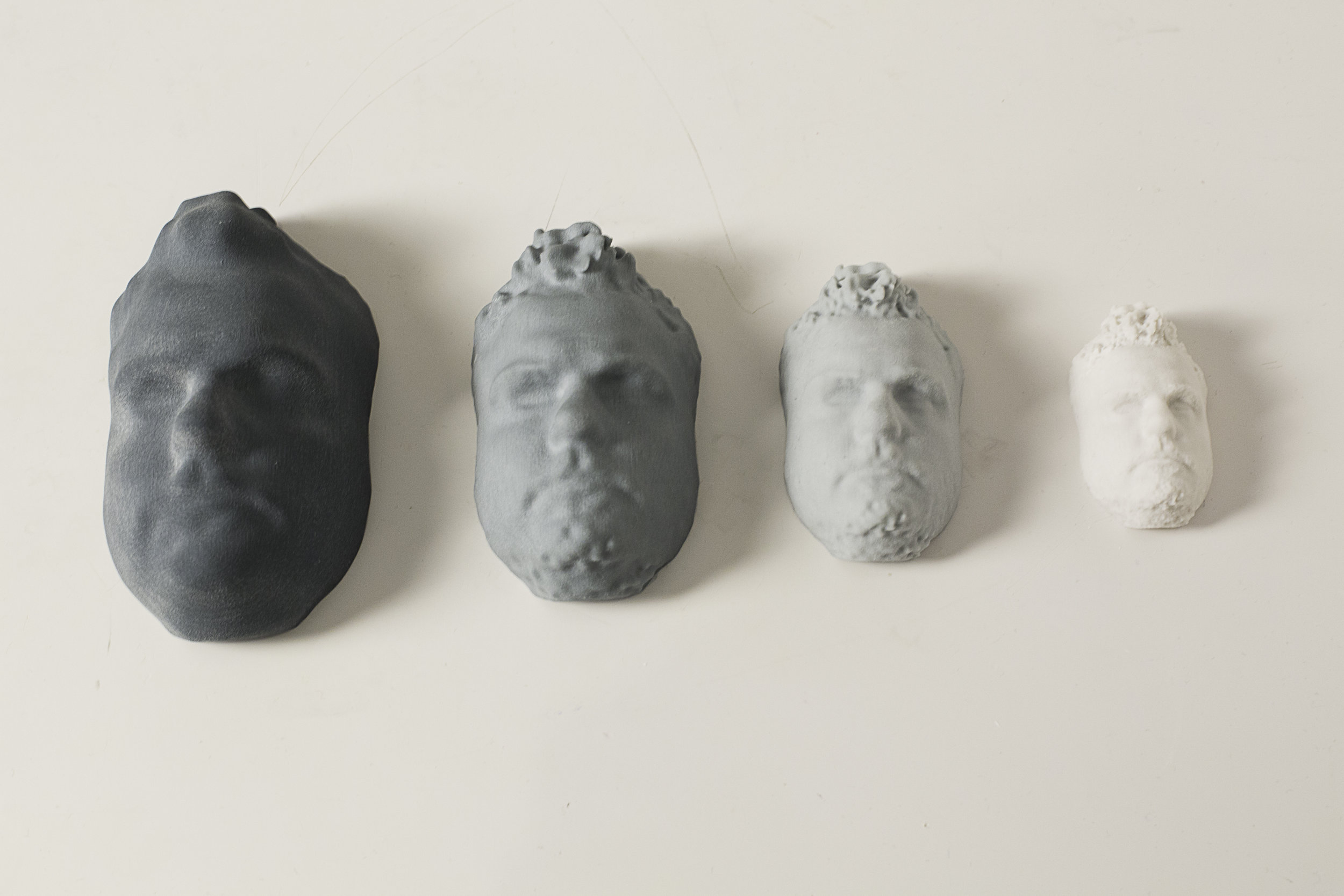 The masks were created by using the method of photogrammetry. It consists of hundreds of pictures taken from all angles on the model, and then piecing the pictures back together in a 3D model that later on gets ready for print.